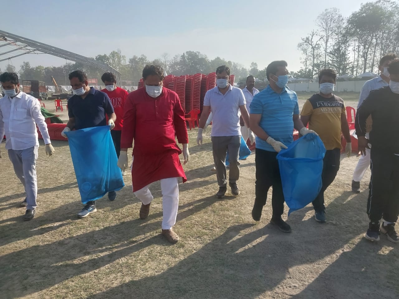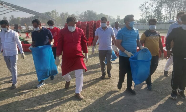 पीएम की रैली से पूर्व भाजपा कार्यकर्ताओं ने मैदान में चलाया स्वच्छता अभियान