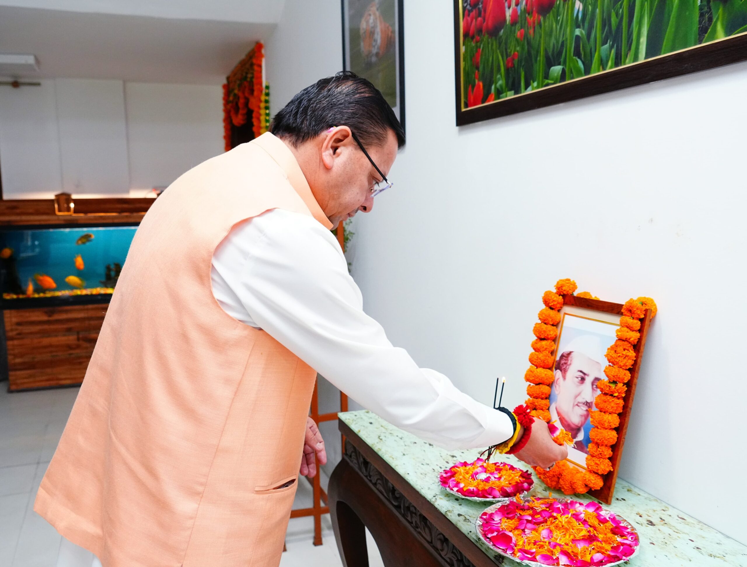 मुख्यमंत्री पुष्कर सिंह धामी ने उत्तर प्रदेश के पूर्व मुख्यमंत्री स्वर्गीय श्री हेमवती नंदन बहुगुणा की पुण्य तिथि के अवसर पर उनके चित्र पर श्रद्धा सुमन अर्पित किए