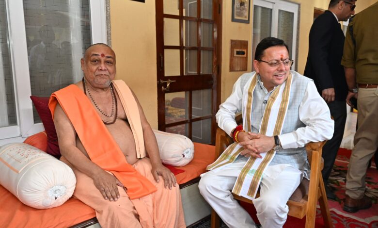 मुख्यमंत्री पुष्कर सिंह धामी ने हरिद्वार कनखल स्थित जगतगुरु आश्रम पहुंचकर शिष्टाचार भेंट की