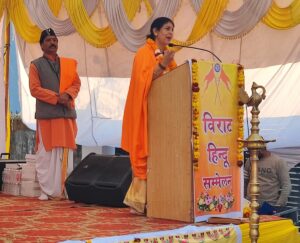 देहरादून! विराट हिन्दू सम्मेलन में समाज के हर वर्ग ने प्रतिभाग करके समरसता और भाईचारे का परिचय दिया। इस कार्यक्रम में मातृशक्ति उद्बोधन में वक्ता के रूप में साहित्य, संस्कृति एवं कला परिषद् की उपाध्यक्ष श्रीमती मधु भट्ट ने सर्वप्रथम राज्य आंदोलन में सक्रिय भागेदारी निभाने वाली मातृ शक्ति को नमन कर अपने उद्बोधन में कहा कि यह वार्ड राज्य आंदोलनकारियों का गढ़ रहा है। आज के इस भव्य आयोजन में मातृशक्ति द्वारा मांगल गीत, सुन्दर भजन, नृत्य व तपस्या नृत्य अकादमी के नन्हे कलाकारों ने भरतनाट्यम शैली में सुन्दर प्रस्तुतियां दी गई हैं। जो कि भारतीय संस्कृति एवं कला को परिलक्षित करती हैं। उन्होंने प्राचीनकाल से रामायण, हनुमान चालीसा, द्रौपदी चीरहरण, आदि की प्रस्तुति वर्तमान काल तक महिलाओं के द्वारा किए गए कार्यों को तथ्यों के साथ सभी के सम्मुख रखा। भारतीय इतिहास में हिन्दू समाज के योगदान को रेखांकित करते हुए उन्होंने भारतीय संस्कृति को सबसे विश्व में उन्नत व गौरवशाली बताया।