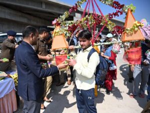 इस दौरान जिलाधिकारी एवं वरिष्ठ पुलिस अधीक्षक ने शारदीय कांवड़ यात्रा पर आए शिव भक्तों का फूल मालाओं से स्वागत किया गया तथा अतिथि देवो भव की परंपरा से फल एवं जल पान वितरित किया गया।