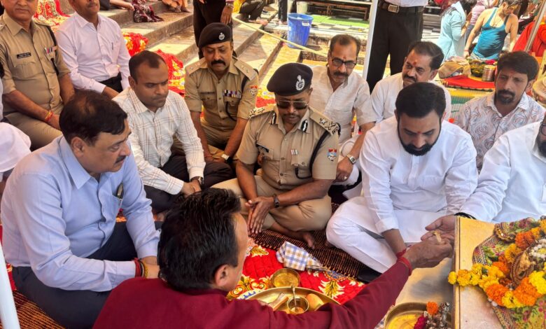 चारधाम यात्रा को निर्विघ्न,सुरक्षित एवं सकुशल ढंग से सम्पन्न कराने के लिए आज हर की पैड़ी पर आयुक्त गढ़वाल मण्डल विनय शंकर पांडे एवं आईजी गढ़वाल राजीव स्वरूप ने मां गंगा की पूजा अर्चना कर कुशल यात्रा संचालन की प्रार्थना