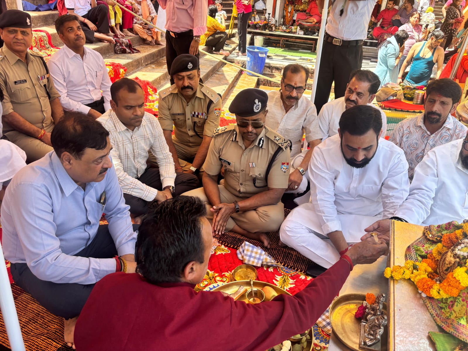 हरिद्वार! चारधाम यात्रा शुरू होने से एक दिन पूर्व आयुक्त गढ़वाल मंडल विनय शंकर पांडे,आईजी गढ़वाल राजीव स्वरूप, जिलाधिकारी मयूर दीक्षित एवं वरिष्ठ पुलिस अधीक्षक नवनीत सिंह भुल्लर ने हर की पैड़ी में मां गंगा की पूजा अर्चना कर चार धाम यात्रा को निर्विघ्न,सुरक्षित एवं कुशलता पूर्वक संपन्न कराने के लिए मां गंगा से प्रार्थना की।