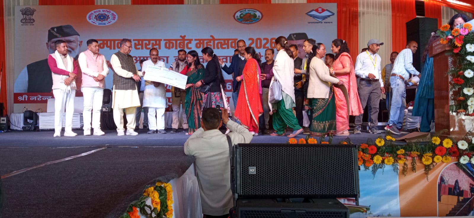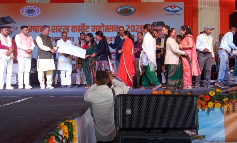 चम्पावत! जनपद के टनकपुर क्षेत्र में ग्राम्य विकास व जिला प्रशासन चंपावत के सहयोग से जनपद में साहसिक पर्यटन संवर्धन,परम्परिक खानपान, लोककला, हस्तशिल्प,सांस्कृतिक धरोहरों के संरक्षण तथा स्वयं सहायता समूहों के उत्पादों के प्रदर्शन हेतु आयोजित 7 दिवसीय सरस कार्बेट महोत्सव के द्वितीय दिवस में सशक्त महिला , सशक्त समाज थीम पर संचालित कार्यक्रम में बतौर मुख्य अतिथि उपस्थित ग्राम्य विकास मंत्री गणेश जोशी द्वारा पशुपालन विभाग, ग्रामोत्थान परियोजना व (रीप) व ग्रामीण आजीविका मिशन के अंतर्गत कार्यरत 19 पशु सखियों को स्मार्ट मोबाइल फोन प्रदान किया गया, साथ ही रीप के सहयोग से चयनित छ: स्वयं सहायता समूहों को सामुहिक उद्यम संचालन के तहत डेयरी, बकरी पालन व पोटस एवं नर्सरी निर्माण तथा तेल युनिट संचालन हेतु रू छत्तीस लाख एवं व्यक्तिगत उद्यम संचालन हेतु रु तीन लाख तीस हजार की धनराशि सहित कुल उन्तालिस लाख तीस हजार की रीप परियोजना सहयोग राशि के चैक वितरित किये गए।
