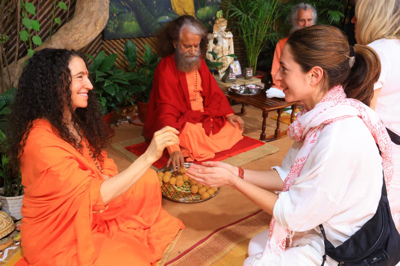 पूज्य स्वामीज और साध्वी के पावन सान्निध्य में प्रतिभागियों ने मौन साधना, प्राणायाम और थर्ड आई मेडिटेशन का अभ्यास किया।