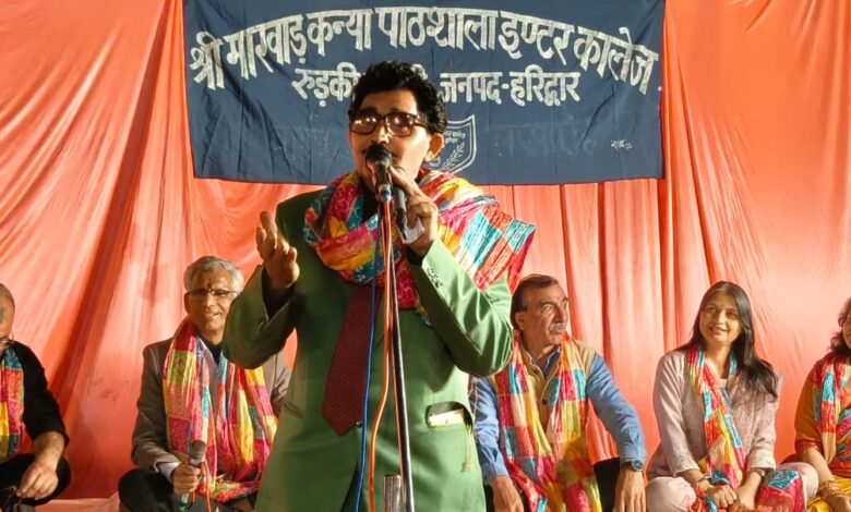 रुड़की।श्रीमारवाड़ी सभा रजि.लालकुर्ती की ओर से होली के अवसर पर मारवाड़ी कन्या इंटर कॉलेज में कवि सम्मेलन व होली मिलन का आयोजन किया गया,जिसमें वरिष्ठ कवियों और शायरों ने होली गीत,राष्ट्रीय एकता,देशप्रेम के साथ-साथ हास्य कविताओं से सभी को मंत्रमुग्ध कर दिया।अंतर्राष्ट्रीय शायर तथा उत्तराखंड उर्दू अकादमी के पूर्व उपाध्यक्ष अफजल मंगलौरी के संचालन में हुए कवि सम्मेलन की अध्यक्षता समाजसेवी व श्रीमारवाड़ी कन्या पाठशाला इंटर कॉलेज के प्रबंधक ललित मोहन अग्रवाल ने की।अपने अध्यक्षीय भाषण में उन्होंने अपनी शुभकामनाएं देते हुए कहा कि कवि सम्मेलन के माध्यम से जो प्रेम,सद्भाव व एकता का संदेश कवियों द्वारा दिया गया,वह हमारी मिली-जुली संस्कृति का प्रतीक है।