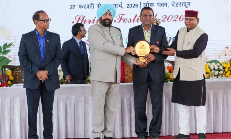 हरिद्वार 03 मार्च 2026। उत्तराखण्ड के राज्यपाल ले.ज.(से.नि.)गुरुमीत सिंह ने लोक भवन में आयोजित तीन दिवसीय बंसतोत्सव 2026 में उत्कृष्ट संचालन एवं संयोजन के लिये ऋषिकुल आयुर्वेद महाविद्यालय के प्रो. डॉ. नरेश चौधरी को विशेष रूप से सम्मानित किया गया जिसमें लाखों दर्शकों ने पुष्प प्रदर्शनी एवं विभिन्न स्थानीय उत्पादों के स्टालों का भ्रमण कर नजदीकी से लोकभवन देखने का सुनहरा अवसर प्राप्त हुआ। उक्त आयोजन में प्रदर्शनी के अतिरिक्त विभिन्न प्रतियोगिताओं का भी आयोजन हुआ जिसमें प्रतिभाग करने वाले विजेताओं को भी पुरस्कृत किया गया। बसंतोत्सव 2026 के उत्कृष्ट संचालन एवं संयोजन के लिए ऋषिकुल आयुर्वेद महाविद्यालय के शरीर रचना विभागाध्यक्ष मेम्बर नेशनल मैनेजिग बॉडी इंडियन रेडक्रास (महामहिम राष्ट्रपति की अध्यक्षता वाली 12 सदस्यीय सर्वोच्च इंडियन रेडक्रास बाडी) प्रो. डॉ. नरेश चौधरी को उत्तराखण्ड के राज्यपाल ले.ज.(सेनि.) गुरुमीत सिंह ने विशेष रूप से प्रतीक चिन्ह एवं प्रमाण पत्र देकर सम्मानित किया।
