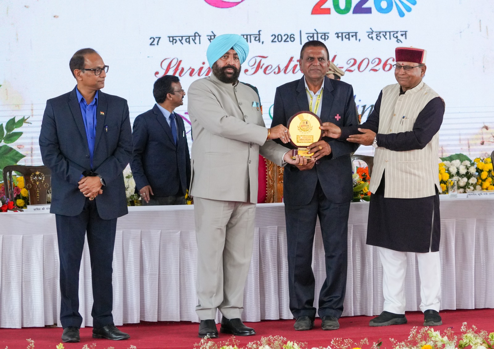राज्यपाल गुरुमीत सिंह ने डॉ. नरेश चौधरी को सम्मानित करते हुए कहा कि अपने मूल दायित्वों का निर्वहन प्रत्येक व्यक्ति करता है परन्तु जो व्यक्ति अपने मूल कार्यों के साथ-साथ अन्य सामाजिक समर्पित सेवा करता है वह विशेष रूप से सम्मान की श्रेणी में आता है। डॉ. नरेश चौधरी की समर्पित सेवा इसका उल्लेखनीय उदाहरण है। इस प्रकार समय-समय पर सम्मान प्राप्त करने वाले व्यक्ति को विशेष रूप से जो प्रोत्साहन मिलता है जिससे वह और अधिक समर्पण से कार्य करने के लिए प्रेरित होकर सामाजिक समर्पित सेवा देने के लिए अग्रसर रहता है। बसंतोत्सव 2026 के समापन समारोह में उपस्थित उत्तराखण्ड के मुख्यमंत्री पुष्कर सिंह धामी, कृषि मंत्री गणेश जोशी, विधायक खजान दास, श्रीमती सविता कपूर ने भी डॉ. नरेश चौधरी को विशेष सम्मान के लिए बधाई दी। उत्तराखण्ड के उद्यान एवं कृषि सचिव डॉ. एस.एन. पाण्डेय ने डॉ. नरेश चौधरी द्वारा विभाग को दिये गये उत्कृष्ट एवं सराहनीय सहयोग के लिए विशेष रूप से प्रशंसा करते हुए कहा कि डॉ. नरेश चौधरी को जब भी कोई दायित्व अन्य विभागों द्वारा दिया जाता हो तो उसे वह सहर्ष स्वीकार करते हुए अपनी कर्मठ कार्यशैली के अनुरूप समर्पित भावना से उत्कृष्ट रूप से पूर्ण करते हैं। उद्यान विभाग के निदेशक एस.एल. सेमवाल ने भी डॉ. नरेश चौधरी को विशेष धन्यवाद देते हुए विभाग की और आभार व्यक्त किया। डॉ. नरेश चौधरी को सम्मानित किये जाने पर राज्यपाल के सचिव रविनाथ रमन, अपर सचिव श्रीमती रीना जोशी, सांस्कृतिक सचिव जुगल किशोर पंत, अपर सचिव आनन्द श्रीवास्तव, निदेशक बागवानी महेन्द्र पाल, अपर निदेशक रतन कुमार, संयुक्त निदेशक सुरेश राम, उप निदेशक नरेन्द्र यादव, उद्यान विभाग से अरुण पाण्डेय, दीपक पुरोहित, योगेश भट्ट, उत्तराखण्ड आयुर्वेद विश्वविद्यालय के कुलपति प्रो. डॉ. अरुण कुमार त्रिपाठी, कुल सचिव नरेन्द्र सिंह कुरियाल, परिसर निदेशक प्रो. अनूप गक्कड ने भी विशेष रूप से बधाई दी। डॉ. नरेश चौधरी ने सम्मानित होने पर राज्यपाल, मुख्यमंत्री, कृषि मंत्री एवं उद्यान विभाग का विशेष रूप से आभार प्रकट करते हुए कहा कि मुझे इस प्रकार के सम्मानो से जो समय-समय पर जो प्रोत्साहन प्राप्त होता है वह ही मेरे जीवन की अतुल्नीय अमूल्य पूँजी है जो मुझे और अधिक ऊर्जा एवं समर्पित होकर कार्य करने के लिए प्रेरणा दायक है तथा सम्मान प्राप्त होने पर जो मुझे शुभचिंतको की लगातार शुभकामनाएं मिलती हैं वह मेरे लिए कभी नहीं थकने वाली हमेशा शक्ति प्रदान करती रहती है।