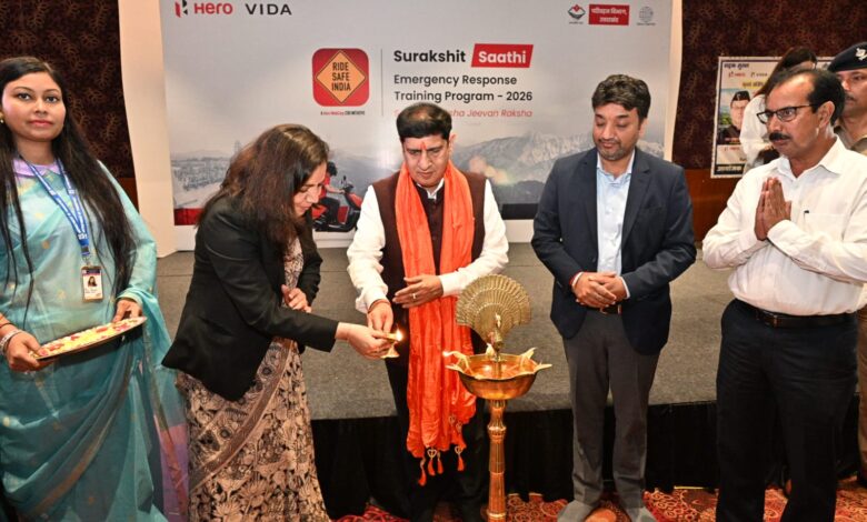 हरिद्वार! परिवहन विभाग, उत्तराखण्ड द्वारा Hero MotoCorp के CSR कार्यक्रम Ride Safe India के अंतर्गत, उप क्षेत्रीय परिवहन कार्यालय (ARTO), हरिद्वार के सहयोग से “सुरक्षित साथी – रोड सेफ्टी एवं इमरजेंसी रिस्पॉन्स प्रशिक्षण कार्यक्रम” का सफल आयोजन आज हरिद्वार स्थित एक स्थानीय होटल में किया गया।जिसका शुभारंभ मुख्य अतिथि परिवहन मंत्री प्रदीप बत्रा ने दीप प्रज्वलित कर किया।कार्यक्रम में विशिष्ट अतिथि अपर जिलाधिकारी पी आर चौहान, संभागीय परिवहन अधिकारी डॉ अनीता चमोला, संभागीय परिवहन अधिकारी संदीप सैनी, सीओ ट्रैफिक बिपेंदर सिंह,प्लांट एच आर हेड पंकज भट्ट, प्लांट हेड सुनील कुमार मौजूद रहे।