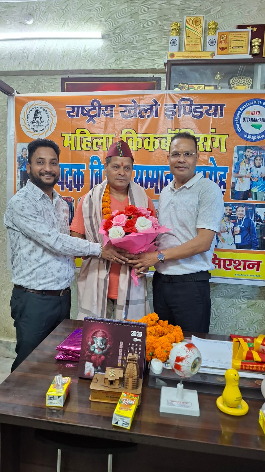 ऋषिकेश! चेन्नई में 25 मार्च से 28 मार्च 2026 के बीच आयोजित हुई चार दिवसीय स्पोर्ट्स ऑथोरिटी ऑफ इंडिया(SAI) द्वारा अस्मिता खेलो इंडिया किकबॉक्सिंग लीग में तीर्थनगरी ऋषिकेश की रेनबुकई कराटे एकेडमी गीता नगर एवं रायवाला की छात्राएं दीया बिष्ट, काजल चौधरी एवं सलोनी ने ब्रॉन्ज मैडल (कांस्य पदक) जीतकर एवं आरोही ने प्रतिभाग कर क्षेत्र का नाम रोशन किया। प्रतियोगिता से वापस लौटी होनहार बेटियों एवं उनके कोच कमल सिंह बिष्ठ को देहरादून रोड स्तिथ अंतरराष्ट्रीय गढ़वाल महासभा के कार्यालय में अंतरराष्ट्रीय गढ़वाल महासभा अध्यक्ष डॉ राजे नेगी एवं उपाध्यक्ष वीरेंद्र नोटियाल ने माल्यापर्ण,शाल ओढ़ाकर एवं स्मृति चिन्ह भेंटकर स्वागत एवं अभिनंदन किया। इस अवसर पर रेनबुकई एकेडमी के संस्थापक अंतरराष्ट्रीय कराटे खिलाड़ी एवं कोच कमल सिंह बिष्ठ ने कहा कि आज के समय में महिलाओं और बालिकाओं के लिए सेल्फ डिफेंस सबसे बड़ा हथियार है। किकबॉक्सिंग न केवल शारीरिक कौशल है, बल्कि यह आत्मविश्वास जगाकर स्वयं की रक्षा करने की शक्ति देता है। ​अंतरराष्ट्रीय गढ़वाल महासभा के संस्थापक अध्यक्ष डॉ राजे नेगी ने कहा कि ऋषिकेश में प्रतिभाओं की कमी नही है बस आवश्यकता है उनके हुनर को सही समय पर उचित पहचान मिलें।