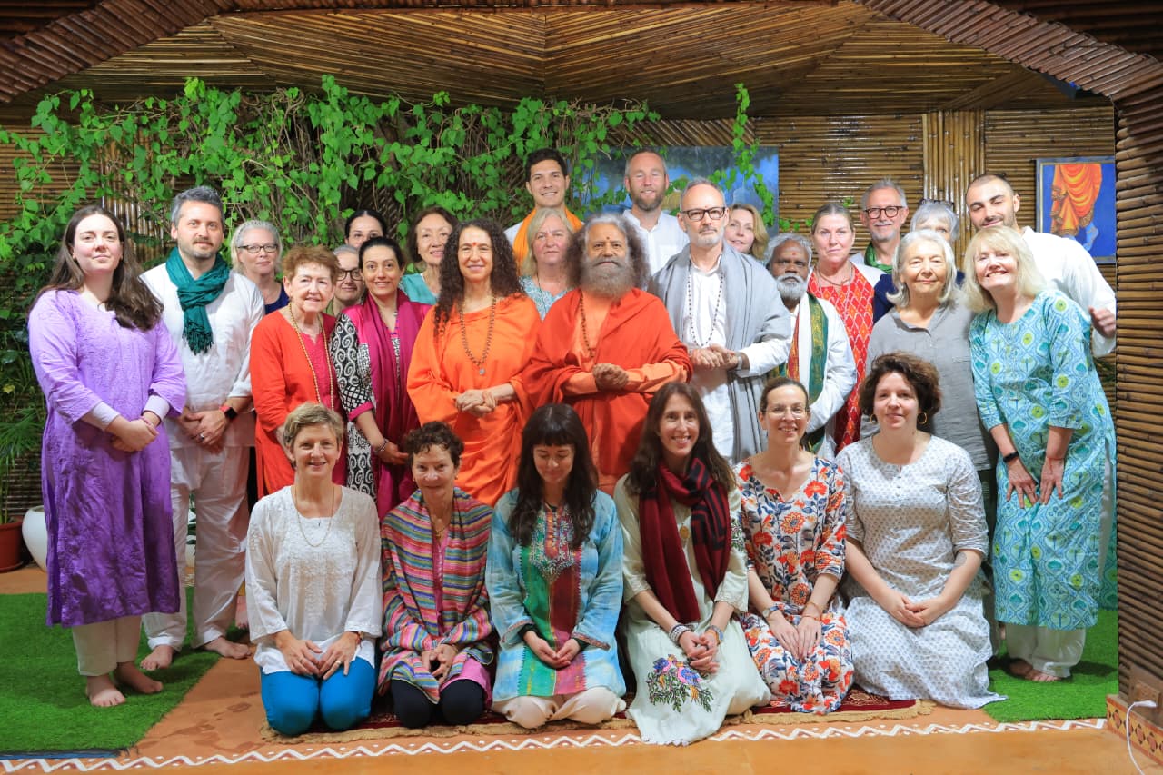 पूज्य स्वामी और साध्वी के पावन सान्निध्य में पूरे ग्रुप ने की योग साधना