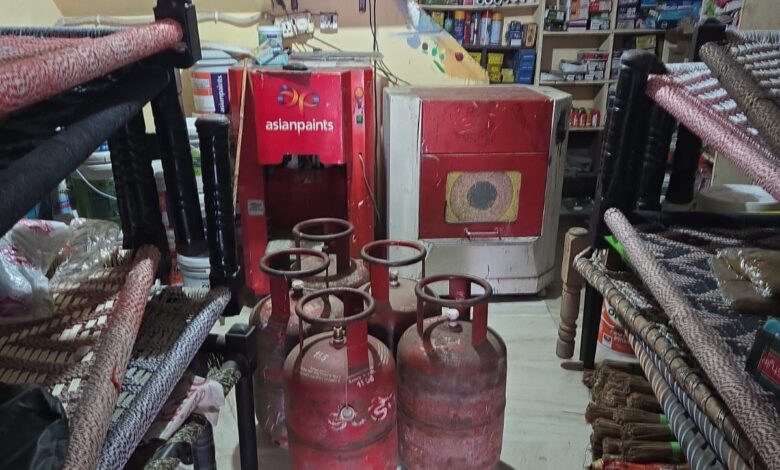 घरेलू गैस सिलेंडर को व्यवसायिक उपयोग में लाने वाले व्यापारियों के 10 सिलेंडर पूर्ति विभाग की टीम ने किए जब्त