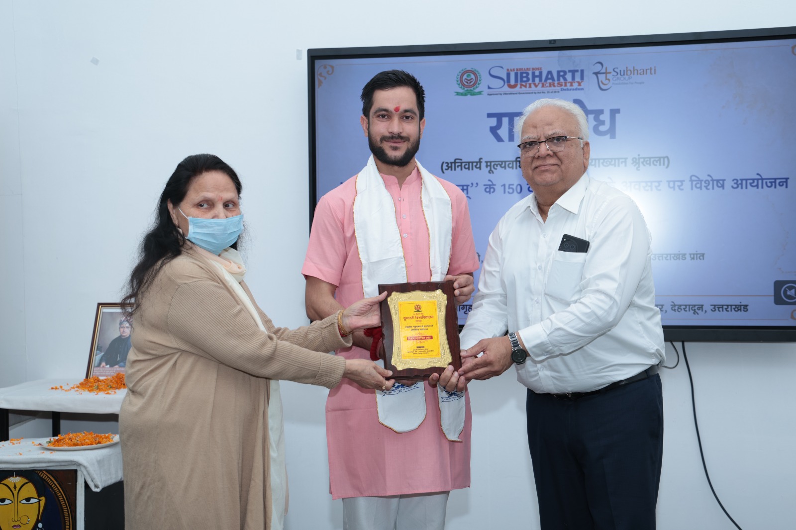 देहरादून। रास बिहारी बोस सुभारती विश्वविद्यालय, देहरादून में “राष्ट्रबोध” कार्यक्रम श्रृंखला के अंतर्गत “वंदे मातरम्” गीत की 150वीं वर्षगांठ बड़े ही उत्साह, गरिमा और राष्ट्रभक्ति के भाव के साथ ललितादित्य प्रेक्षागृह में मनाई गई। कार्यक्रम ने उपस्थित जनसमूह को देशप्रेम और राष्ट्रीय चेतना से ओत-प्रोत कर दिया।